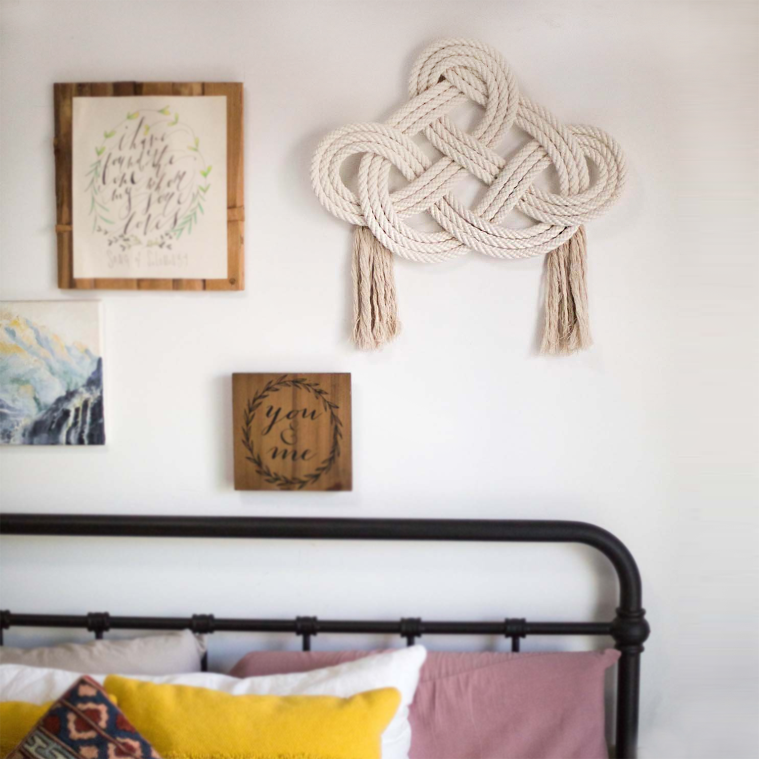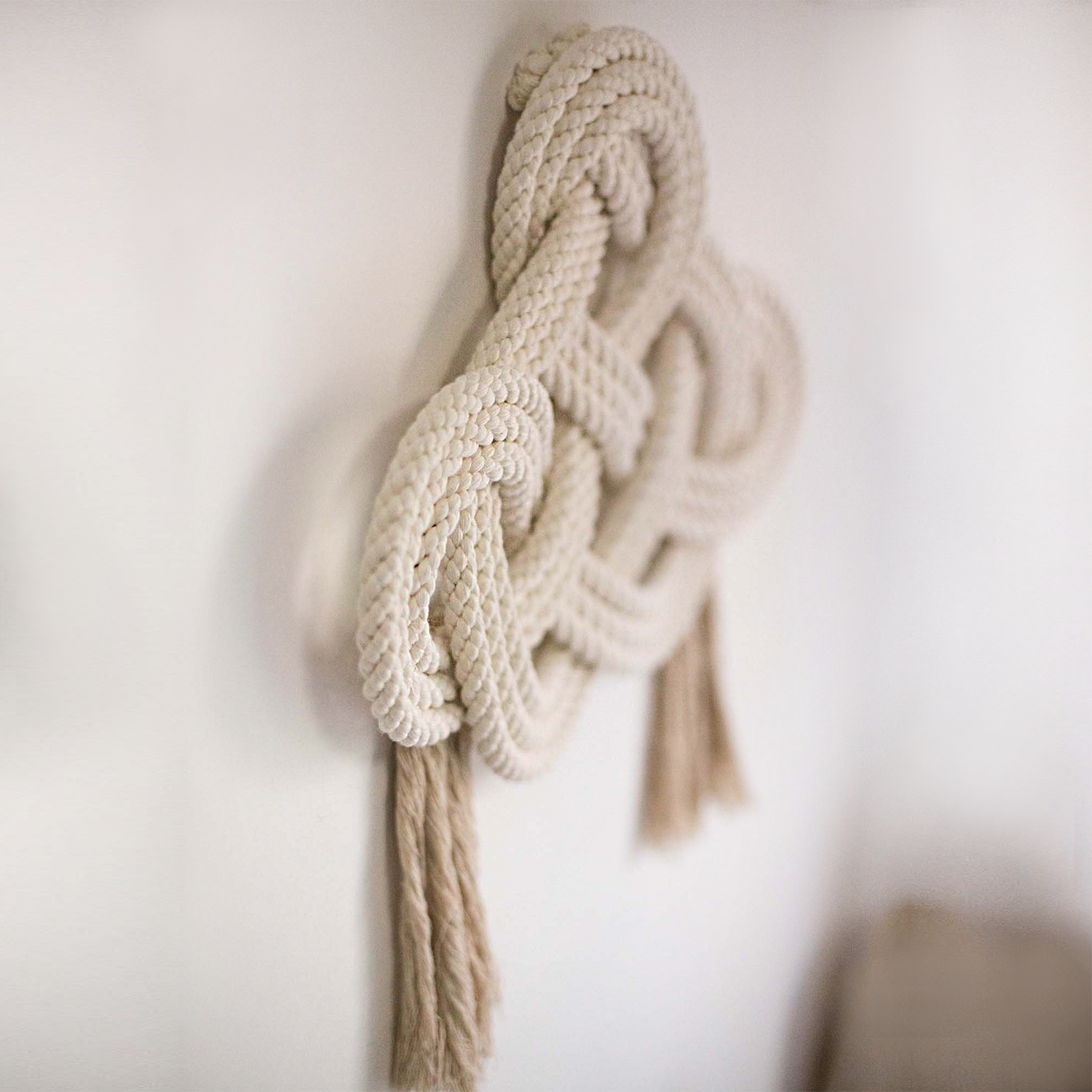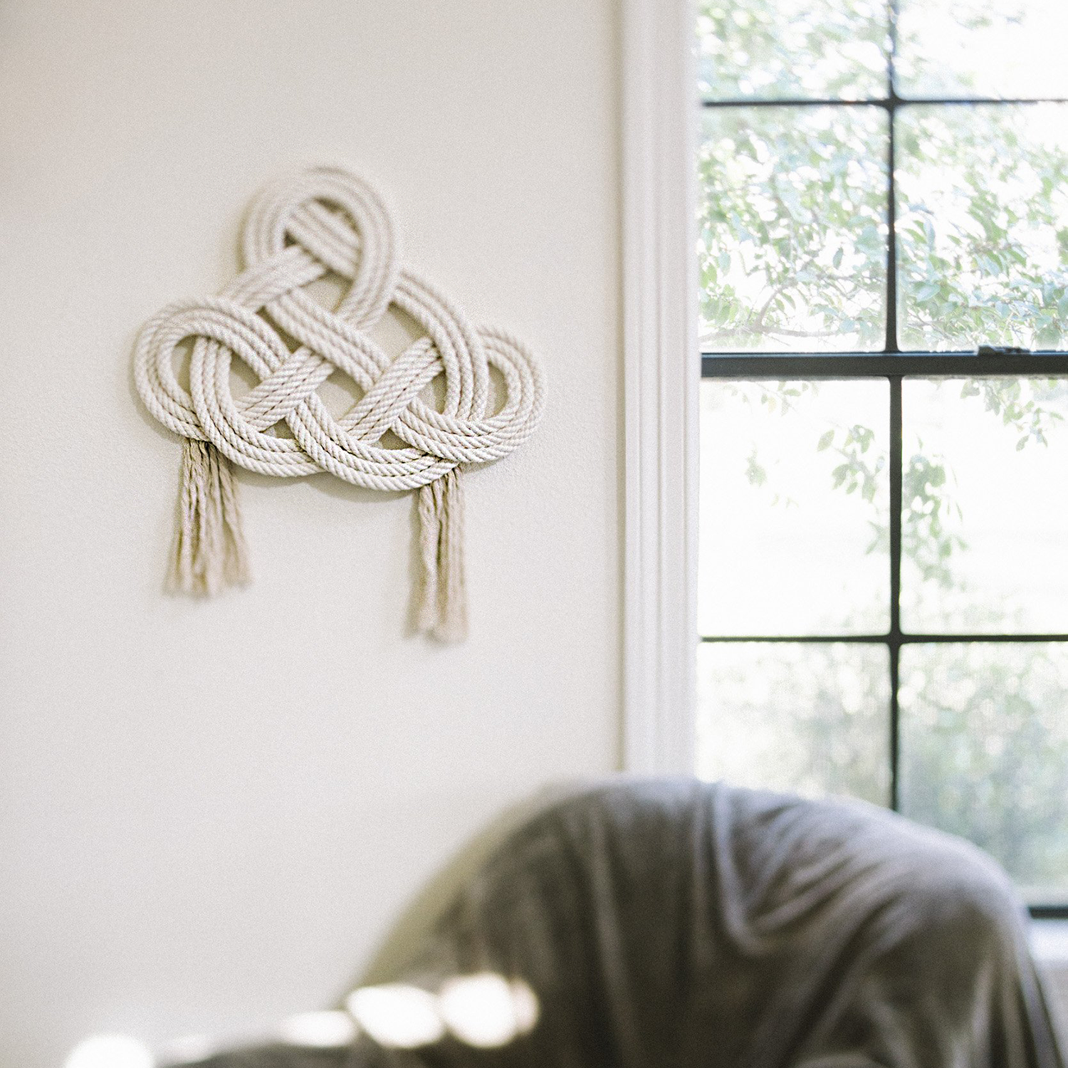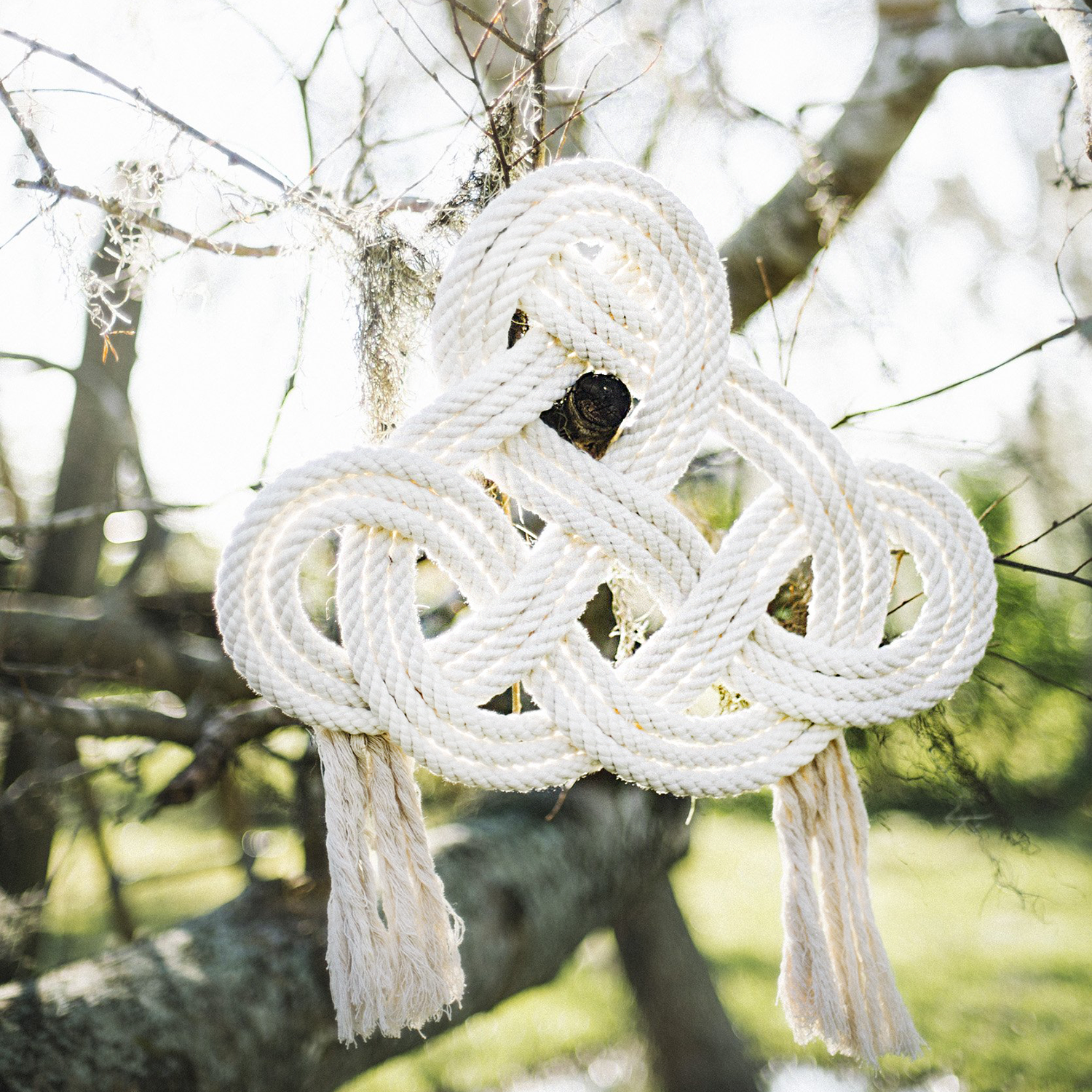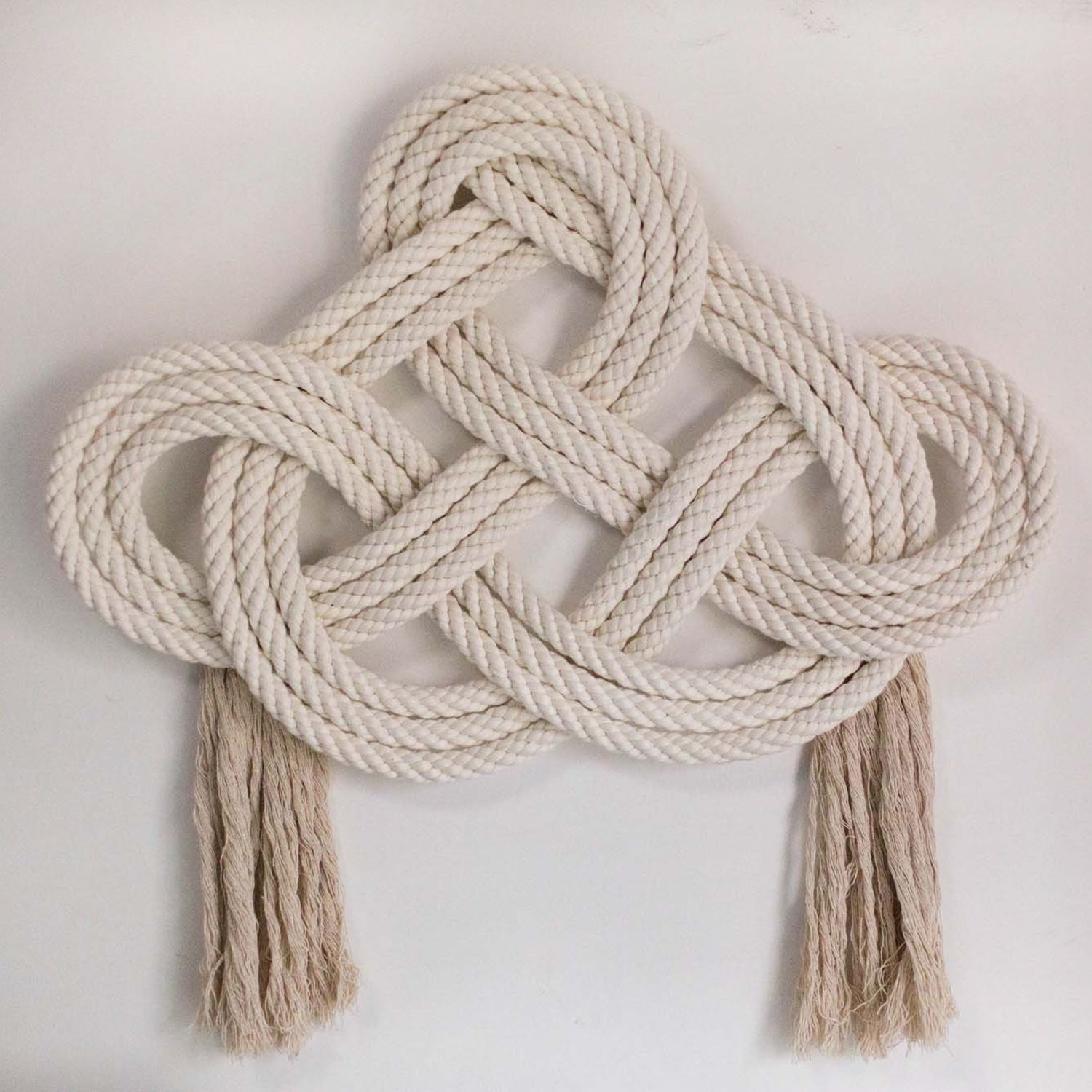 The Infinity Wall Hanging is hand-knotted with a trinity knot and two tassels. Measuring 22x18" plus 8" tassels, this unique piece is a stunning addition to any wall!