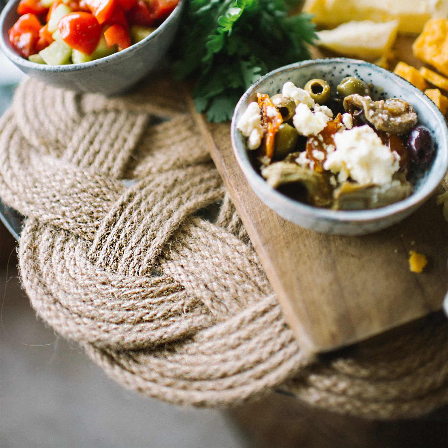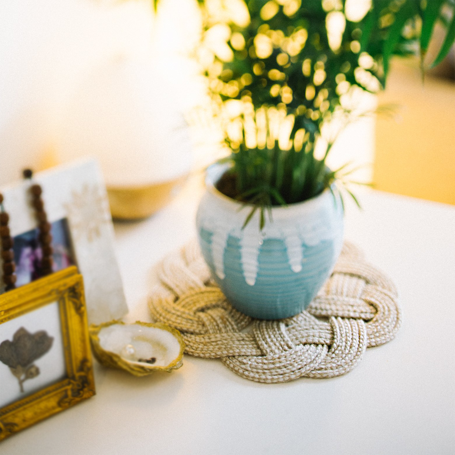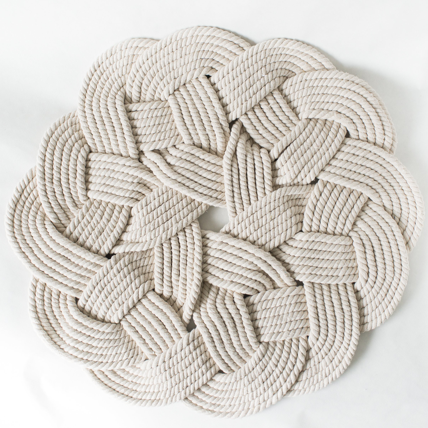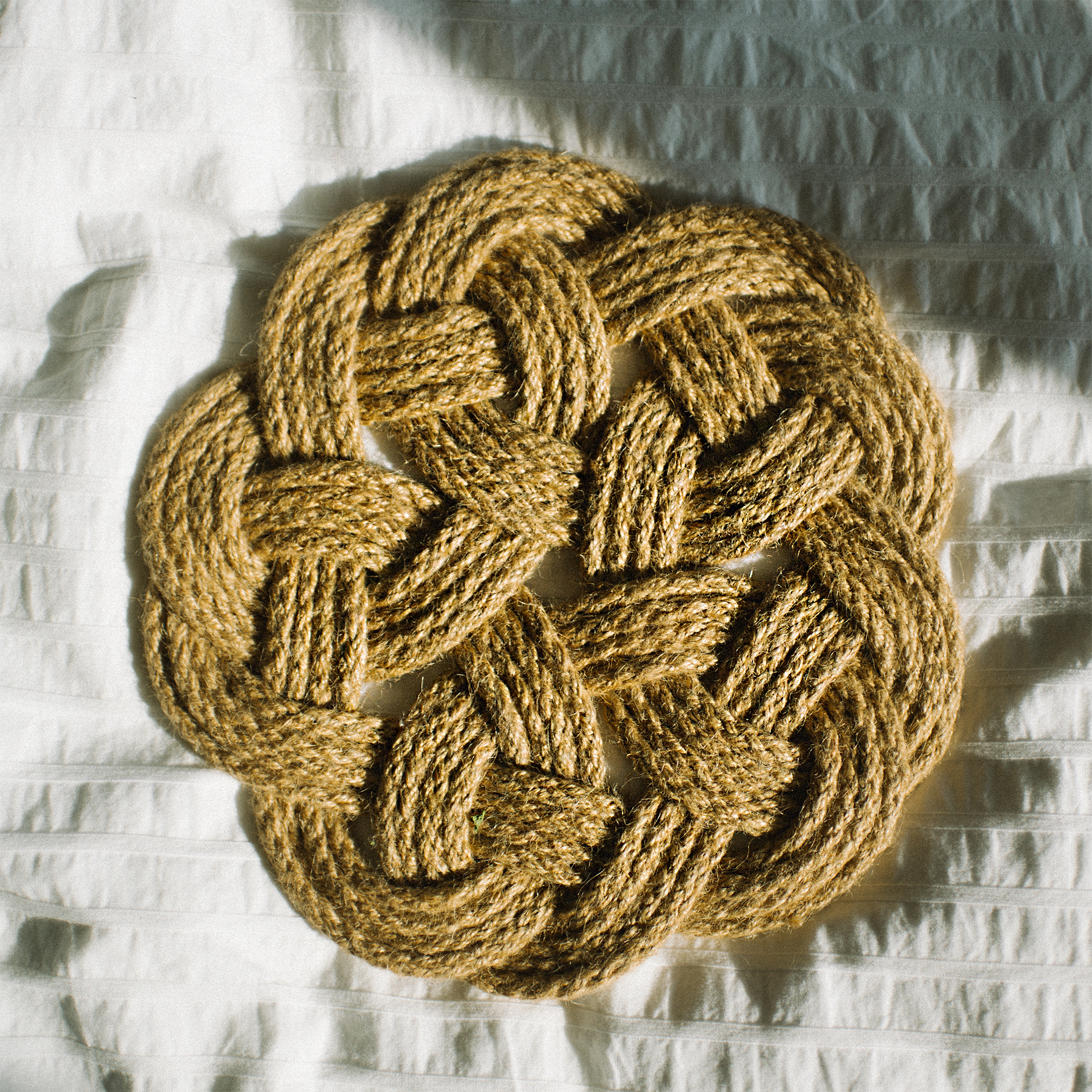 These trivets are a beautiful way to protect your tabletops from hot pots or pans. Measuring approximately 9 inches in diameter, each trivet is made from a single strand of rope.